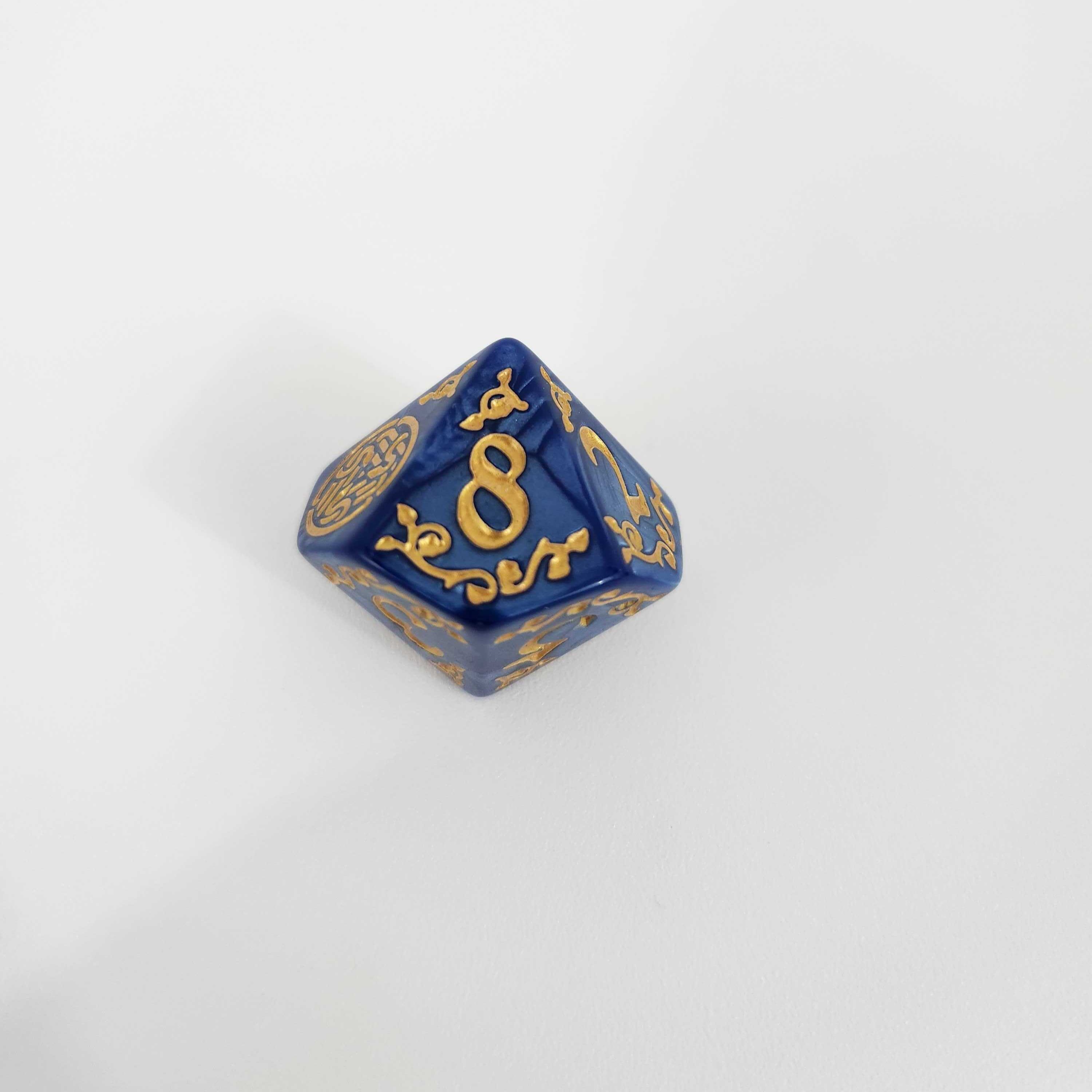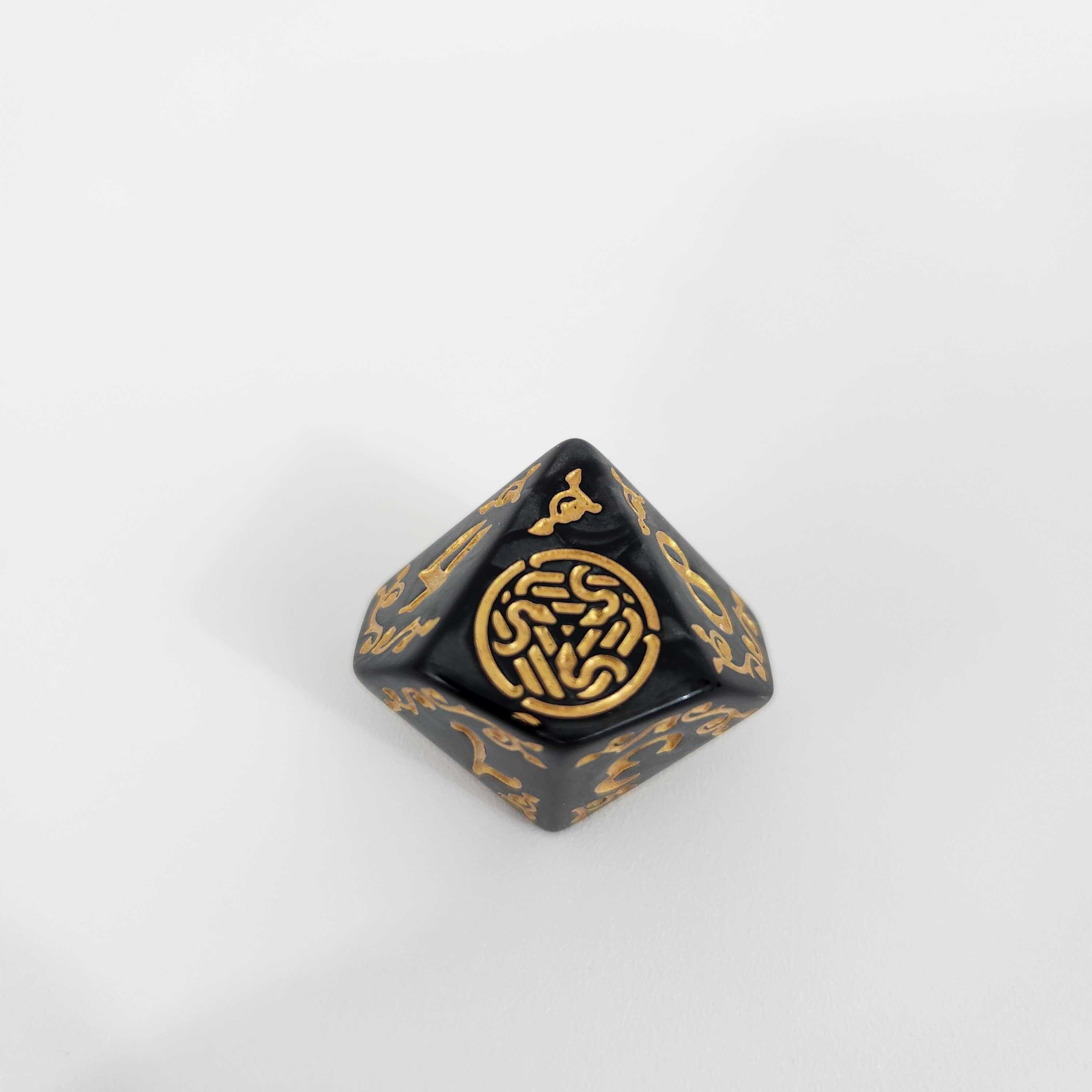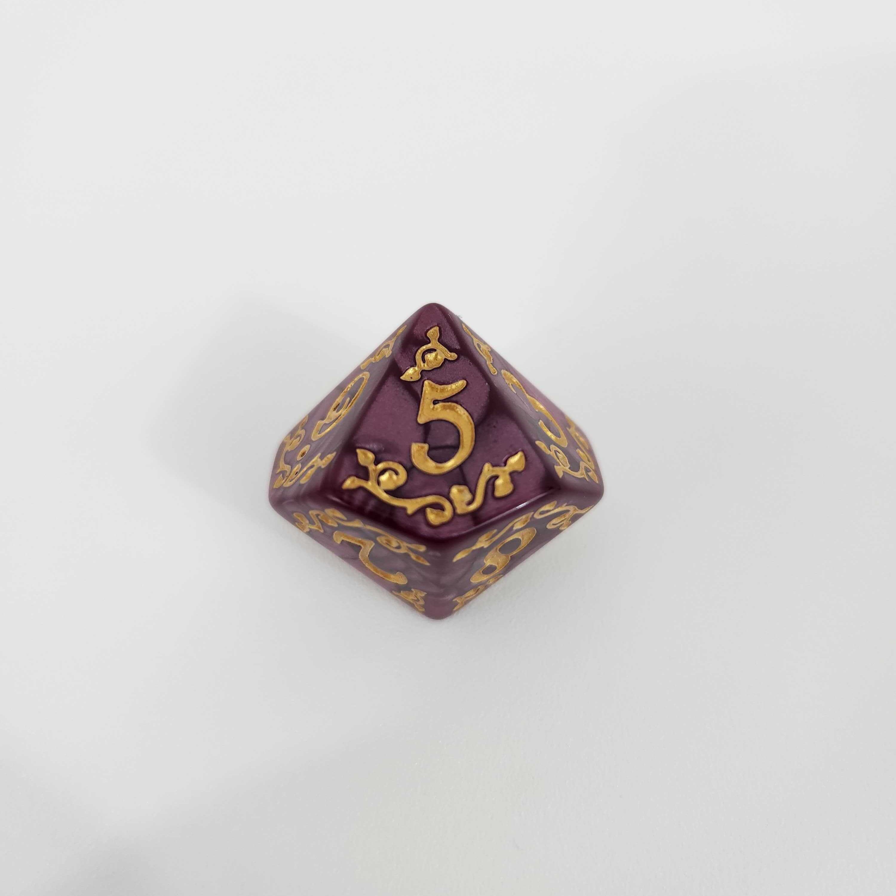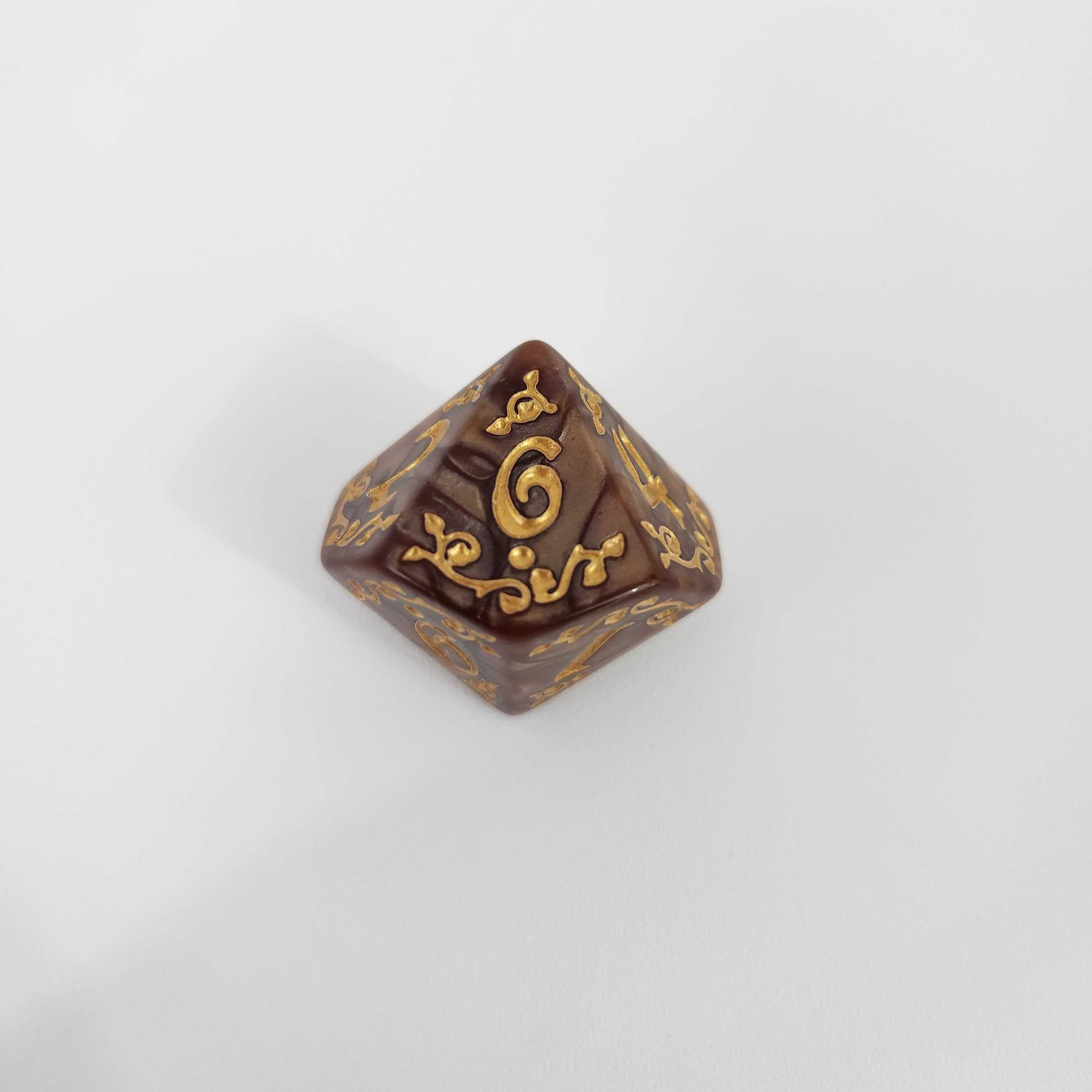 Premium Pearlescent Finish: Enjoy the satisfying weight and smooth roll you expect from top-tier gaming dice. The rich, marbled acrylic catches the light beautifully, perfectly complementing the custom gold designs etched deeply into every face.