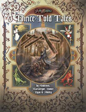Thrice-Told Tales features stories by Christian Roesenkjaer Andersen, David MacGregor, Christian Jensen Romer, Matt Ryan, and Mark Shirley. Cover illustration by Christian St. Pierre; interior illustration by Brett Barkley, Jason Cole, Jenna Fowler, Jethro Lentle, and Christian St. Pierre, with cartography by Matt Ryan.