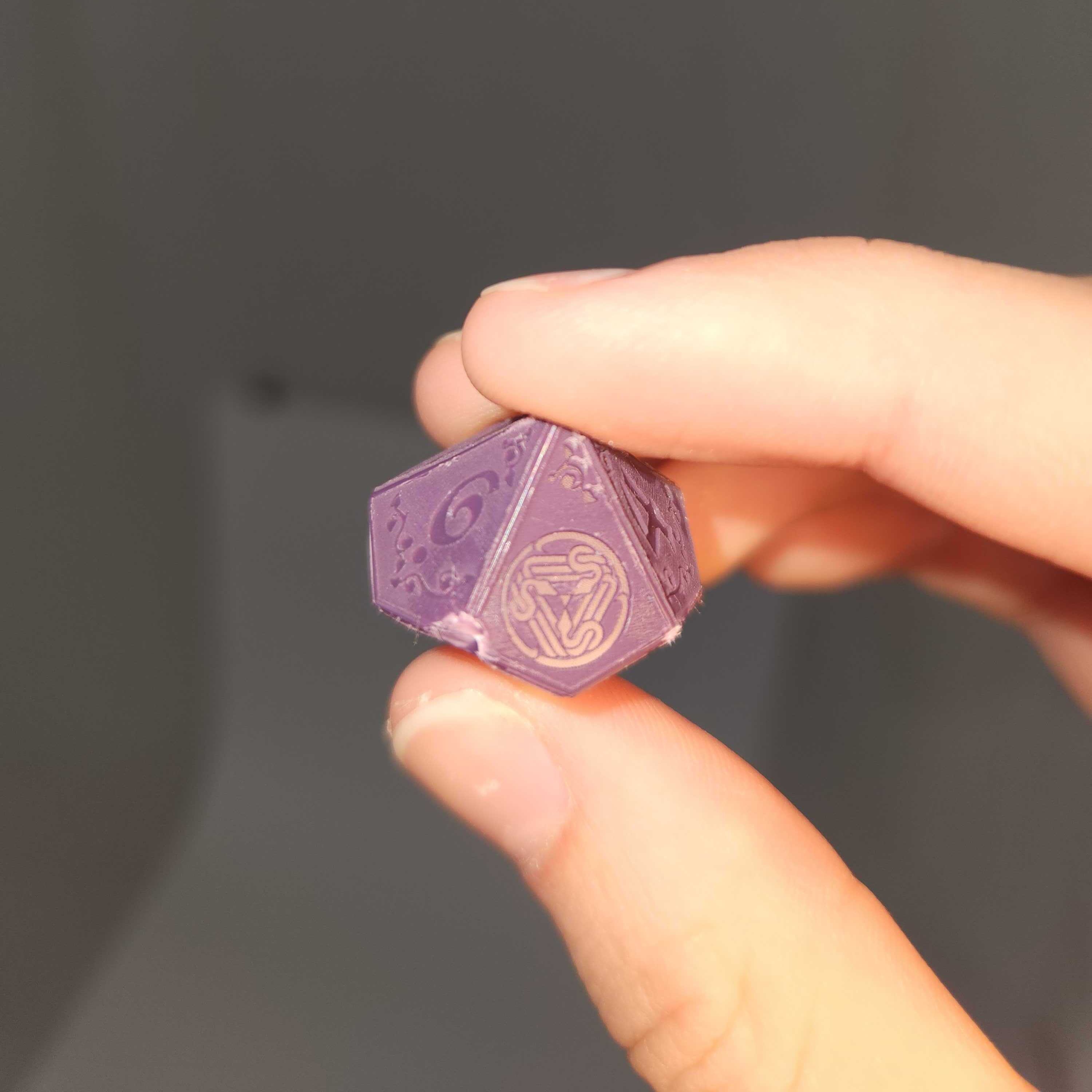 These 10-sided dice for Ars Magica are handcrafted by literally "transmuting", to give it a new life as 'recycled randomizers.' Produced locally in Summerset, Wisconsin, this original print run represents our commitment to exploring eco-friendly gaming accessories. Due to the nature of the recycled plastics and the intricate molding process, these dice possess a raw, unrefined aesthetic and are provided completely unpainted. Whether you choose to ink the numbering yourself or keep them in their natural state, every single die is a distinct, one-of-a-kind artifact for your collection. They feature custom-crafted numbers 1 through 9, and the Order of Hermes sigil marks your stress die botches. This complete set includes six 10-sided dice in distinctive colors: red, blue, green, purple, black, and brown. The four primary pearlized colors intentionally match the four seasons of a covenant and the four Realms found within the pages of the new Definitive Edition core book.
